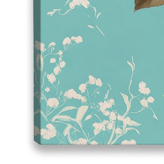 Ein majestätischer Leopard mit einem wogenden Blumenkranz auf dem Kopf strahlt sowohl Kraft als auch Sanftheit aus. Die harmonische Kombination von lebhaften Farben und zarten Blüten verleiht jedem Raum eine frische und elegante Ausstrahlung. Ideal für das Wohnzimmer, wo er zu Gesprächen anregt und die Atmosphäre belebt.