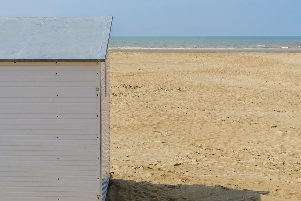 Ein Buchleser in einer Strandhütte am Strand von Koksijde (Belgien)