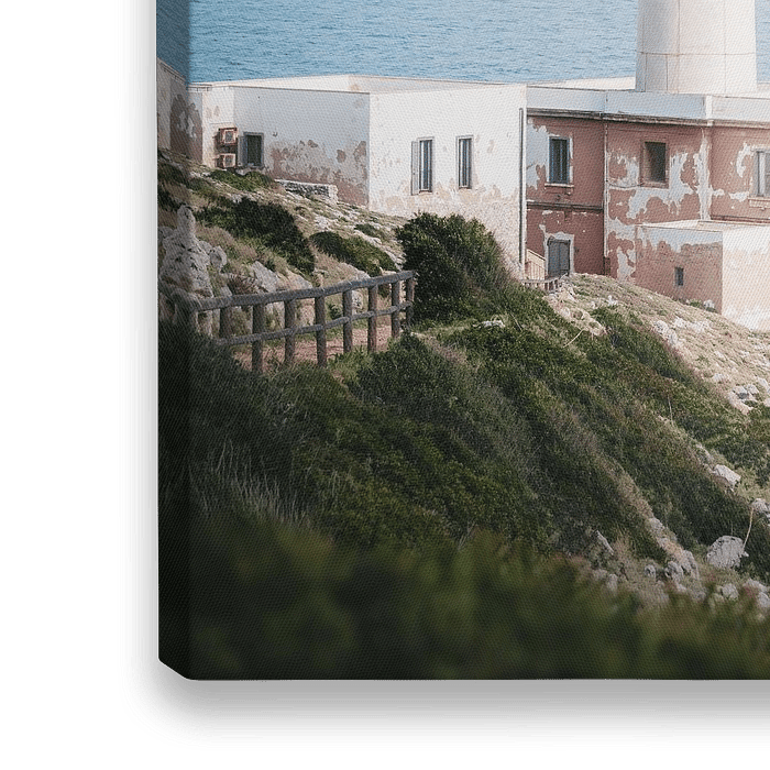 Dies ist ein Foto des Leuchtturms von Capo d'Otranto, dem östlichsten Punkt Italiens. Der Leuchtturm wurde 1817 erbaut und in den 1970er Jahren aufgegeben. Im Jahr 2008 wurde der Leuchtturm jedoch wieder für Touristen geöffnet. Dieser Leuchtturm ist einer von fünf, die von der Europäischen Kommission geschützt werden. Bei gutem Wetter kann man von hier aus die Küste Albaniens sehen.
