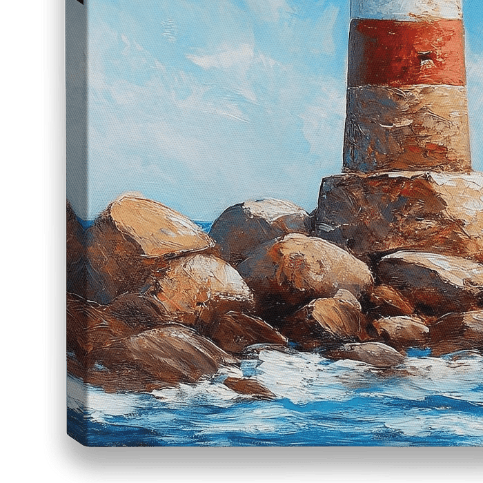 Bestelle dieses Landschafts-Wandbild Leuchtturm an der Küste von Poster Art Shop als Reproduktion auf Leinwand, Alu-Dibond, als Poster, Fototapete oder Acrylglasbild.
