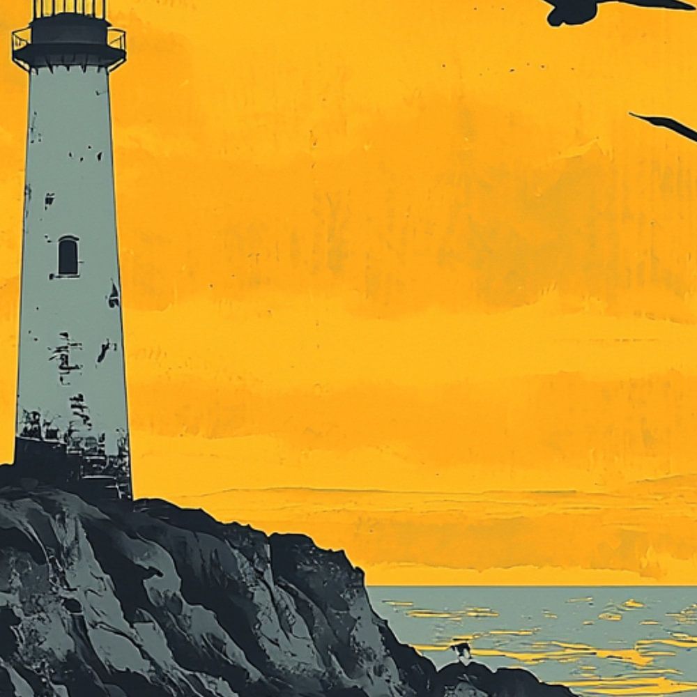 Ein Leuchtturm, grob mit Kohle und Kreide skizziert, thront einsam auf einer Klippe. Die Linien sind grob, die Konturen ausdrucksstark. Der Wind reißt am Himmel, der in dynamischen Schwüngen wiedergegeben wird. Das Licht leuchtet wie eine hoffnungsvolle Flamme durch die dunklen Töne. Ein Leuchtfeuer der Sicherheit in einer Welt des Sturms.