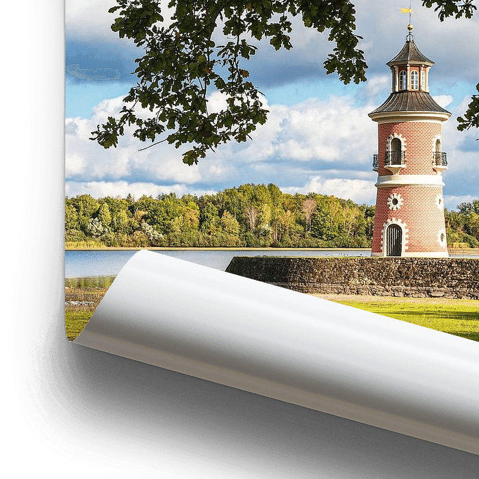 Bestelle dieses Landschafts-Wandbild Leuchtturm nahe Schloss Moritzburg in Sachsen von Rico Ködder als Reproduktion auf Leinwand, Alu-Dibond, als Poster, Fototapete oder Acrylglasbild.