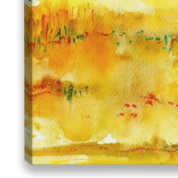 Aquarellmalerei einer lichtdurchfluteten Landschaft in Gelb...