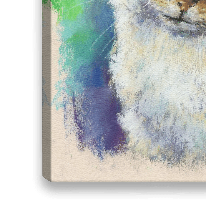 Lieber Freund ist ein Pastellgemälde im Hochformat der Künstlerin Karen Kaspar. Es zeigt den Kopf und Oberkörper einer weißen getigerten Katze mit braunen Flecken im Fell. Sie hat grüne Augen. Der Hintergrund ist abstrakt in Grün- und Blautönen gehalten.