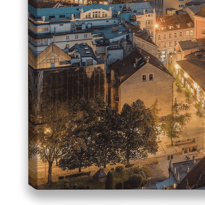 Bestelle das Foto Ljubljana am Abend von Michael Valjak als Reproduktion auf Leinwand, Alu-Dibond, als Poster, Fototapete oder Acrylglasbild.