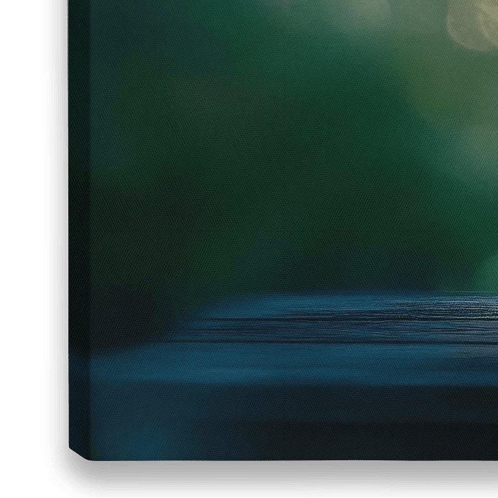 Sanfte Lichtstrahlen tanzen durch das Blätterdach, während zwei nostalgische Laternen sanft leuchten und eine warme, einladende Atmosphäre schaffen. Umgeben von zarten Blumen und einem verschwommenen, natürlichen Hintergrund vermittelt dieses herzerwärmende Bild den perfekten Touch für ein gemütliches Wohnzimmer oder eine einladende…