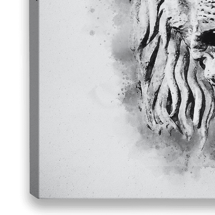 Bestelle dieses Löwen-Wandbild Löwe Portrait Statue Kettenbrücke Budapest Aquarell Schwarz und Weiß von Andreea Eva Herczegh als Reproduktion auf Leinwand, Alu-Dibond, als Poster, Fototapete oder Acrylglasbild.