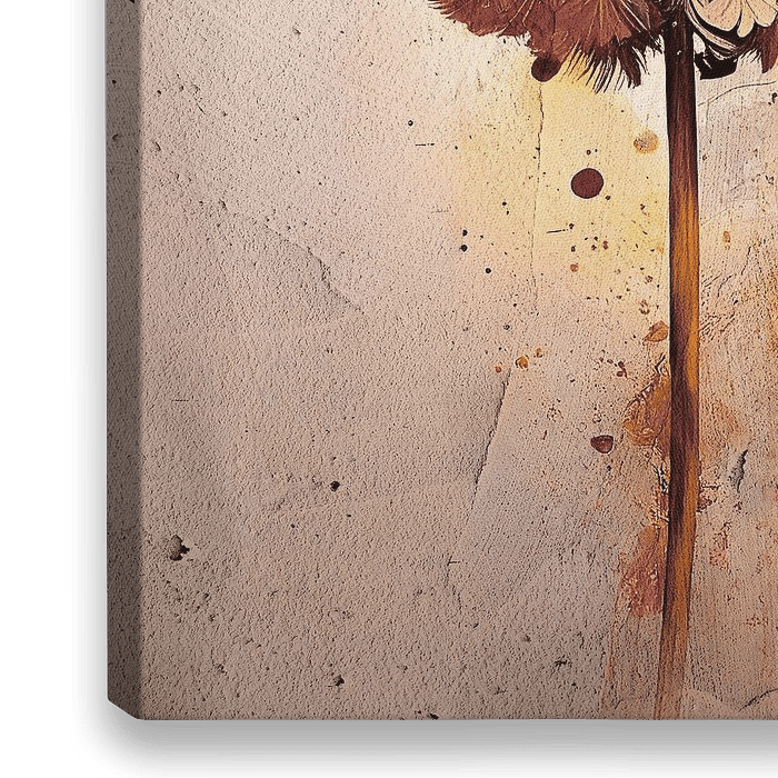 Detail: Eine abstrakte Pusteblume in Herbsttönen auf einem Hintergrund mit Betonstruktur-Effekt.