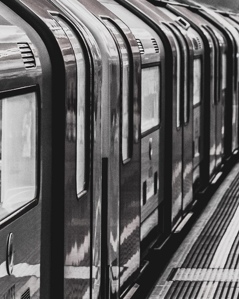 Bild einer U-Bahn-Station in London, Vereinigtes Königreich. Die Linien der U-Bahn, die Lichter und der Bahnsteig selbst haben mich angesprochen.