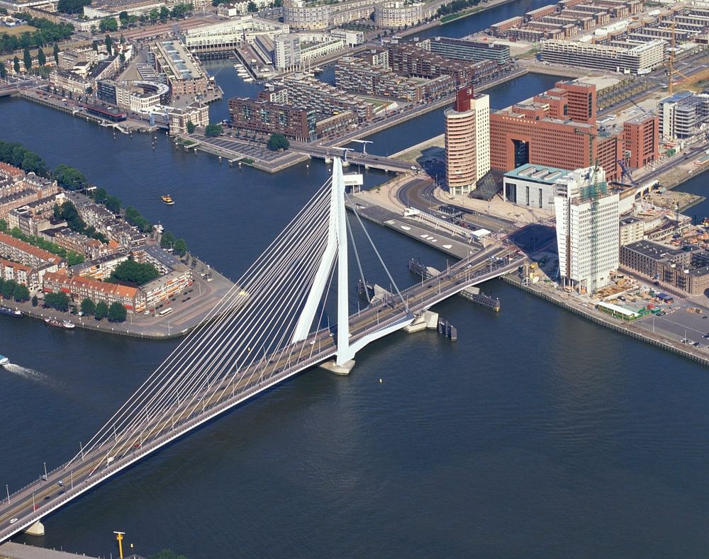 Luftaufnahme der Erasmusbrücke in Rotterdam, Niederlande