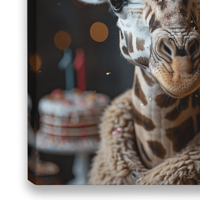 Bestelle das Foto Lustige Giraffe Geburtstag im 60er Jahre Disco-Stil von Poster Art Shop als Reproduktion auf Leinwand, Alu-Dibond, als Poster, Fototapete oder Acrylglasbild.