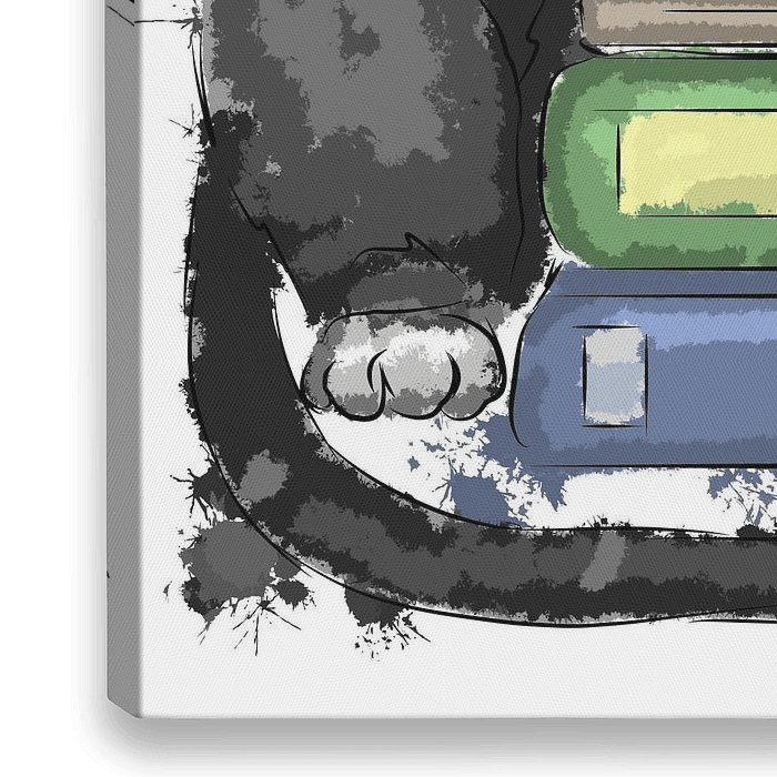 Bestelle diese Illustration Lustige Katze mit Büchern von Antiope33 als Reproduktion auf Leinwand, Alu-Dibond, als Poster, Fototapete oder Acrylglasbild.