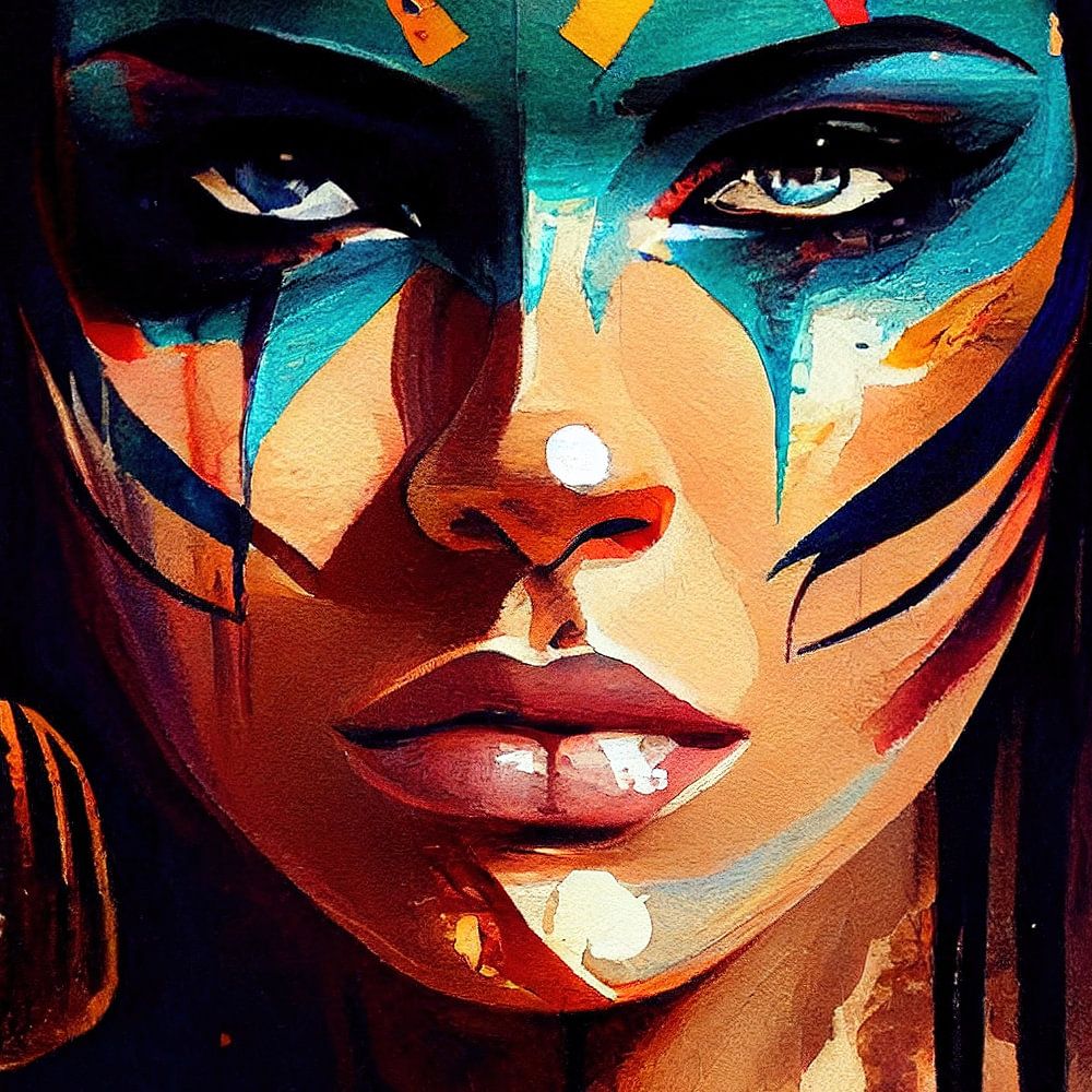 Bestelle dieses Porträt Mächtige ägyptische Kriegerin #3 von Chromatic Fusion Studio als Reproduktion auf Leinwand, Alu-Dibond, als Poster, Fototapete oder Acrylglasbild.
