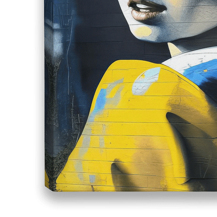 Bestelle dieses Popart-Wandbild Mädchen mit dem Perlenohrring | Banksy Style | Graffiti | Mädchen von Vermeer von Blickfänger Gemälde als Reproduktion auf Leinwand, Alu-Dibond, als Poster, Fototapete oder Acrylglasbild.