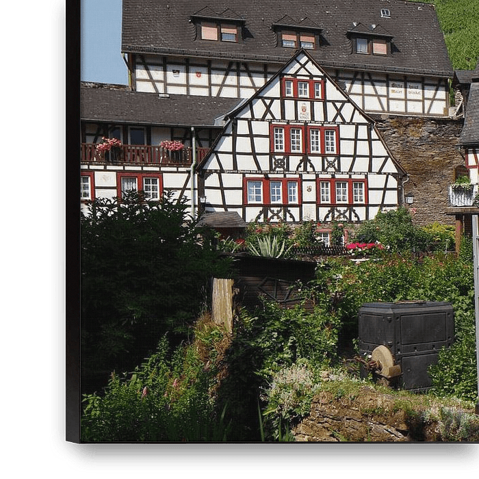 Bestelle das Foto Malerwinkel, half-timbered houses in the old town, Bacharach am Rhein, Unesco World Heritage Upper M von Torsten Krüger als Reproduktion auf Leinwand, Alu-Dibond, als Poster, Fototapete oder Acrylglasbild.
