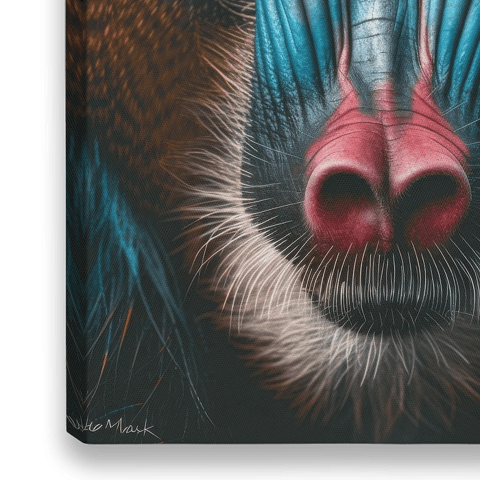 Bestelle das digitale Kunst Bild Mandrill von Poster Art Shop als Reproduktion auf Leinwand, Alu-Dibond, als Poster, Fototapete oder Acrylglasbild.