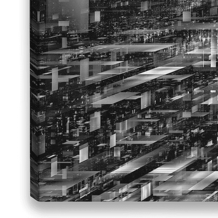 Bestelle dieses abstrakte Wandbild Matrix Panorama Schwarz Weiß von Max Steinwald als Reproduktion auf Leinwand, Alu-Dibond, als Poster, Fototapete oder Acrylglasbild.
