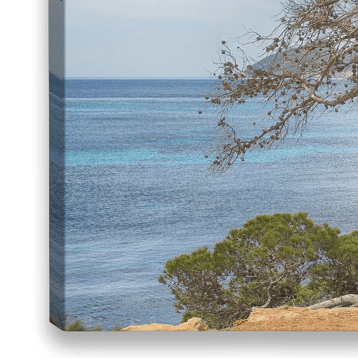 Ein alter Baum auf Punta Arabi auf Ibiza überblickt das Mittelmeer.