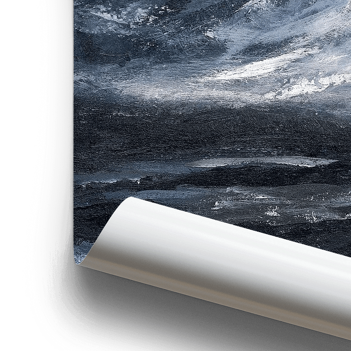 Moderne Meereslandschaft in neutralem Dunkelblau, Weiß und Rosa.