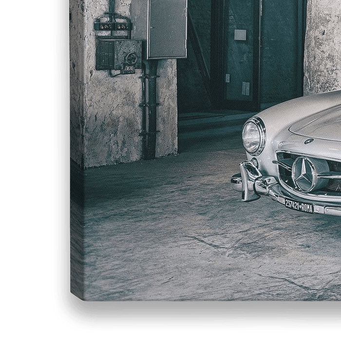 Mercedes Benz W198, Verkaufsbezeichnung Mercedes SL 300 Coupé. Von diesem legendären Automobil wurden nur 1400 Stück gebaut, dementsprechend begehrt und teuer ist dieser Sportwagen. Fotografiert in schwarzweiß.