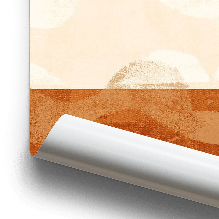 Bestelle dieses Landschafts-Wandbild Minimalistische abstrakte Landschaft in Pfirsich, Creme und Terrakotta von Dina Dankers als Reproduktion auf Leinwand, Alu-Dibond, als Poster, Fototapete oder Acrylglasbild.