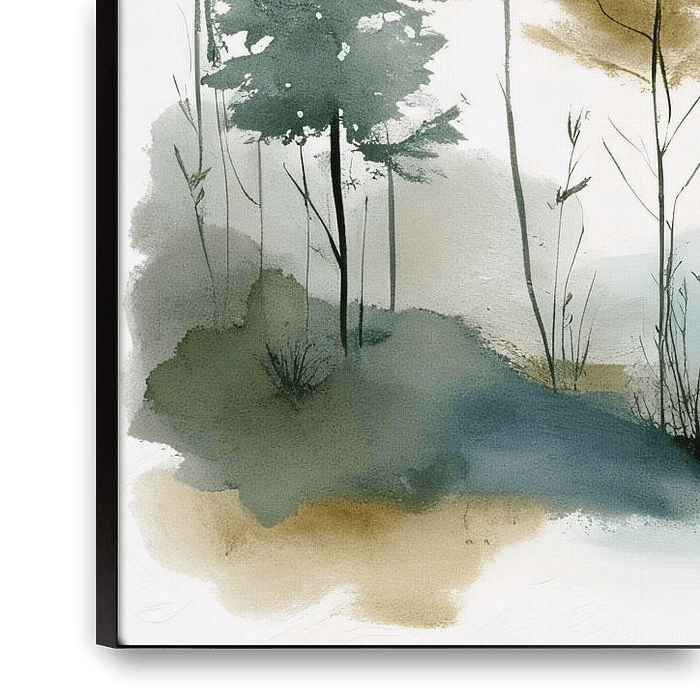 Dieses wunderschöne Design zeigt eine ruhige und minimalistische Waldlandschaft in sanften Aquarellfarben. Die sanften Grün-, Blau- und Beigetöne schaffen eine beruhigende Atmosphäre, die perfekt in jeden Raum passt, der einen beruhigenden und anspruchsvollen Look braucht. Die schlanken Silhouetten der Bäume und die subtilen…