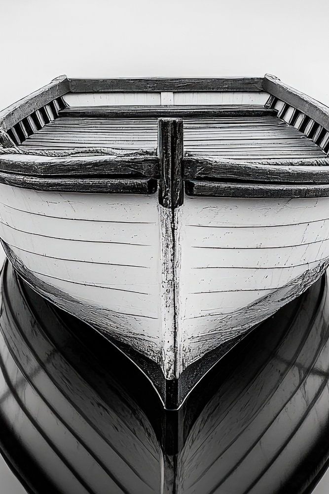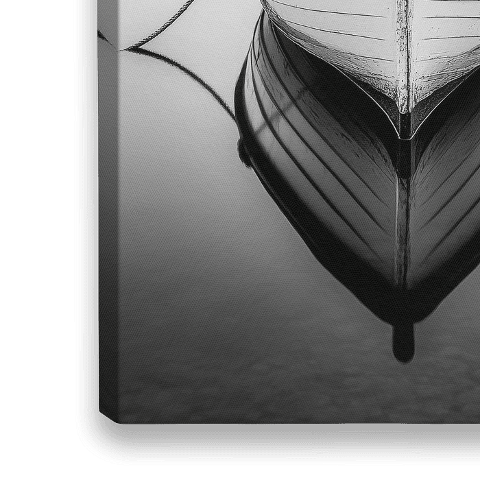 In sanften Grautönen schwebt ein elegantes Boot ruhig auf dem stillen Wasser und entfaltet eine fast meditative Atmosphäre. Die spiegelnde Oberfläche verstärkt den träumerischen Charakter und lädt zum Verweilen ein. Ideal für das Schlafzimmer, um entspannte Gedanken und eine friedliche Stimmung zu fördern.