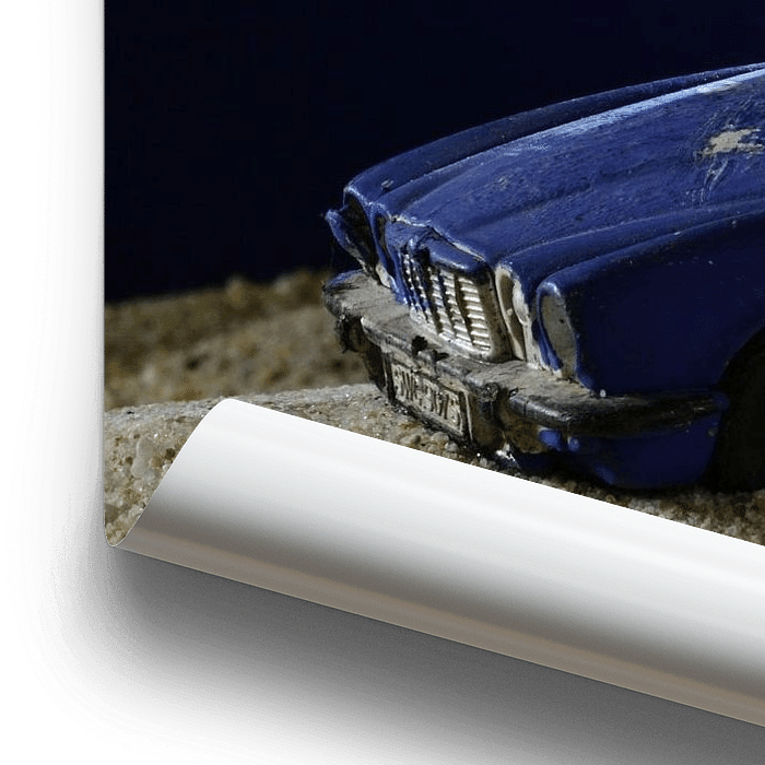 Bestelle das Foto Modellautowrack Jaguar XJ 12 Police von Ingo Laue als Reproduktion auf Leinwand, Alu-Dibond, als Poster, Fototapete oder Acrylglasbild.