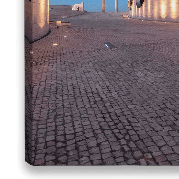 Gebäude in moderner Architektur der Champalimaud Stiftung in Lissabon zur blauen Stunde fotografiert.