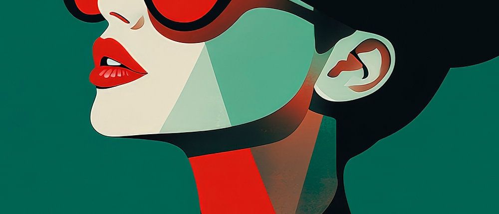 Mit einem faszinierenden Spiel aus geometrischen Formen und mutigen Farben strahlt diese stilisierte Dame in Sonnenbrille eine Aura von Selbstbewusstsein und Eleganz aus. Die satte grüne Hintergrundfarbe setzt einen lebendigen Akzent, ideal für ein modernes Wohnzimmer oder einen kreativen Arbeitsplatz, der Inspiration und Stil vereint.