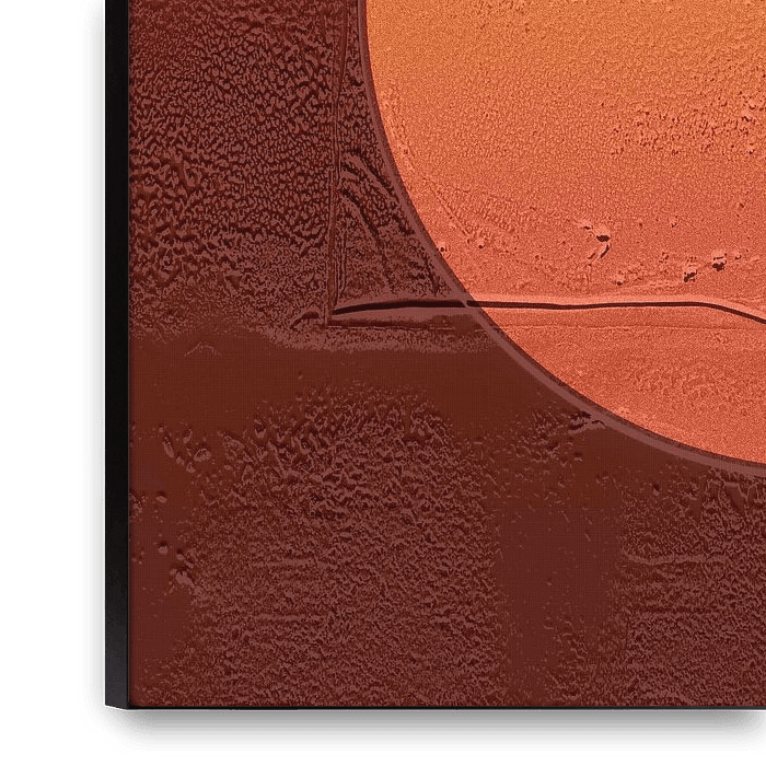 Bestelle dieses abstrakte Wandbild Moderne Japandi Sonne Abstraktion in Erdfarben von FRESH Fine Art als Reproduktion auf Leinwand, Alu-Dibond, als Poster, Fototapete oder Acrylglasbild.