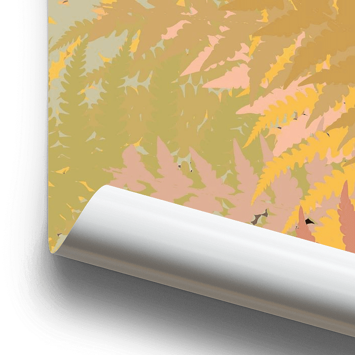 Bestelle dieses abstrakte Wandbild Moderne abstrakte botanische Kunst in warmen Retro-Farben. Farnblätter. von Dina Dankers als Reproduktion auf Leinwand, Alu-Dibond, als Poster, Fototapete oder Acrylglasbild.