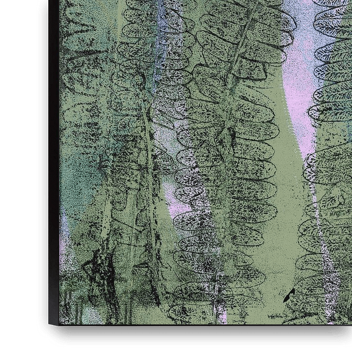 Monotypie von echten Farnblättern und abstrakten Texturen.