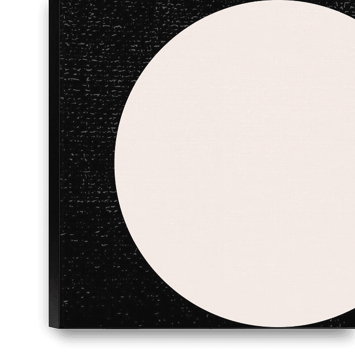 Diese Serie moderner abstrakter geometrischer Kunstwerke erforscht die Kraft der Einfachheit durch kühne schwarz-weiße Kompositionen. Inspiriert von der Bauhaus- und Avantgarde-Bewegung, zeigt jedes Werk große, klare Formen - wie Kreise, Halbkreise und Rechtecke -, die in starken, minimalistischen Layouts angeordnet sind.