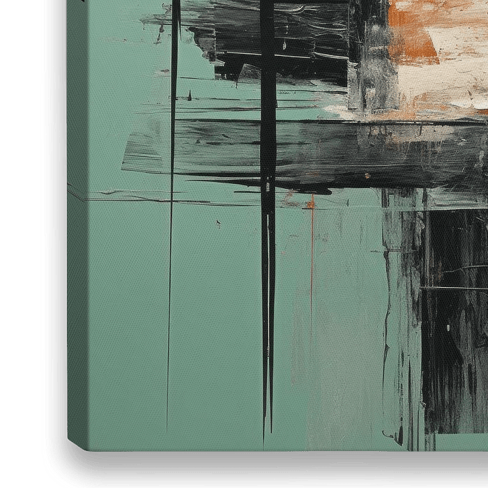 Moderne und abstrakte Formen und Linien in Grün, Weiß, Schwarz und Orange. Ein außergewöhnliches Werk an Ihrer Wand! Schön in jedem Format und auf jedem Material.