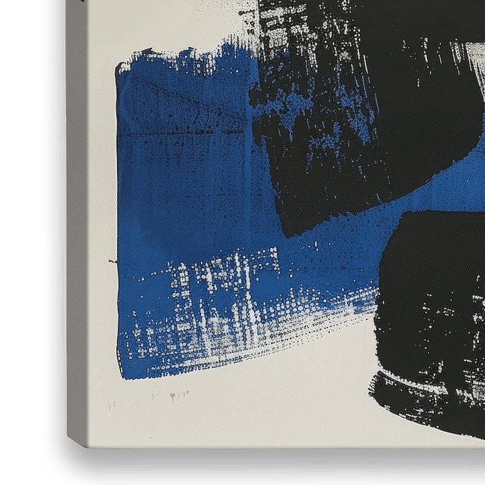 Moderner und abstrakter Minimalismus, schwarze und blaue Tinte. Moderne Formen und Linien. Wählen Sie das Format und Material selbst und machen Sie es zu einem echten Blickfang für Ihr Interieur.