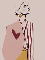 Bringen Sie mit diesem stilvollen Porträt einen Hauch von moderner Eleganz in Ihr Zuhause. Die verspielten Herzdetails und die minimalistischen Linien machen dieses Werk zu einem echten Blickfang. Perfekt für ein modernes Interieur, in dem Kunst eine persönliche und warme Note verleihen darf.