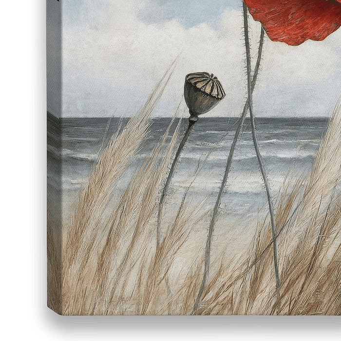 An einem ruhigen Küstenabschnitt, wo die Wellen sanft auf den Sand treffen und das Gras sich leicht im Wind wiegt, erheben sich zwei Mohnblumen in all ihrer Pracht. Die rote Blume spiegelt die Leidenschaft und Energie des Meeres wider, während die weiße Blume wie ein Symbol der Reinheit und Gelassenheit neben ihr steht. Die Natur…
