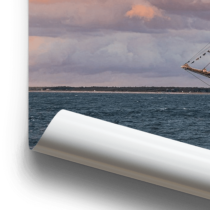 Bestelle das Foto Molenturm und Segelschiff auf der Ostsee während der Hanse Sail von Rico Ködder als Reproduktion auf Leinwand, Alu-Dibond, als Poster, Fototapete oder Acrylglasbild.