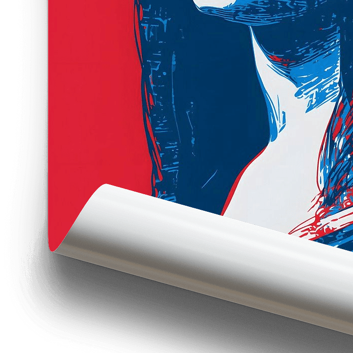 Die ikonische Figur erscheint in einer reduzierten Farbpalette aus Weiß, Blau und Rot, wodurch ein lebendiger Kontrast entsteht, der sofort ins Auge fällt. Klare Linien und kräftige Farbflächen verleihen dem…