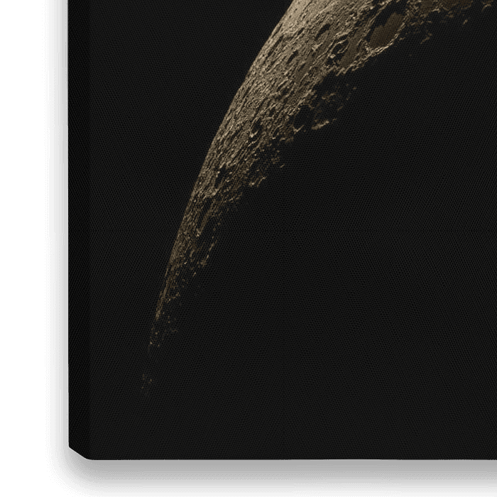 Großaufnahme unseres Mondes als liegende Mondsichel. Das Foto zeichnet sich durch Detailreichtum im Bereich der Mondkrater aus. Dieses Motiv ist nicht nur als Wandbild, sondern auch auch als Poster oder Fototapete geeignet.