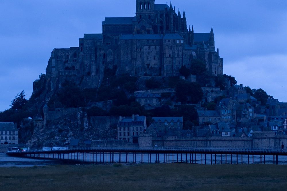 Mont Saint Michel in den verkehrsarmen Zeiten, wenn alles noch ruhig ist. Mit durchschnittlich 3.500.000 Besuchern pro Jahr ist es die Ruhe vor dem Sturm.