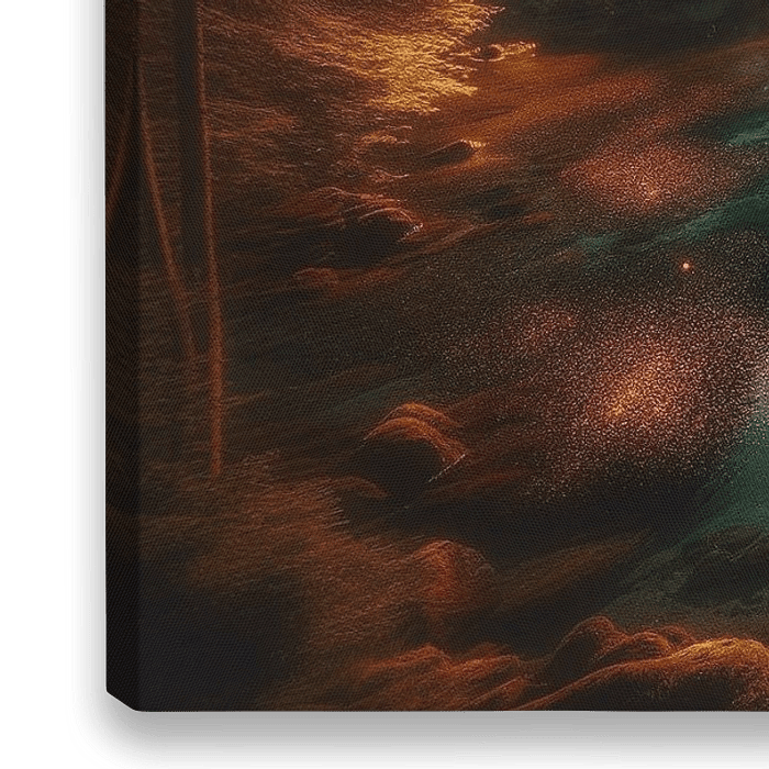 Bestelle das digitale Kunst Bild Morgenlicht funkelt auf stiller Waldsee von artefacti als Reproduktion auf Leinwand, Alu-Dibond, als Poster, Fototapete oder Acrylglasbild.