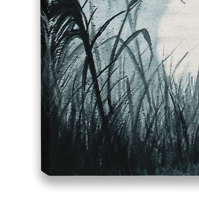 Sonnengesang - Originalaquarall (60x80 ) 2014) Auimpression, Schilf, Gräser, schwarzweiß, Natur, Landschaft, Schönheit,Meditativ, Inspiration, Malerei, Painting, Aquarell, Sonne, blaue Stunde, Blue Hour, Japandi,