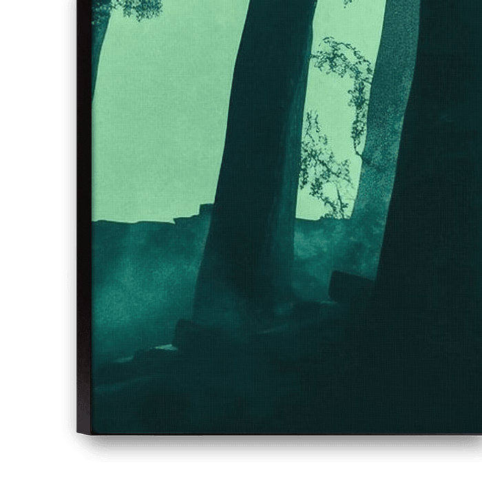 In einem mystischen Wald, umhüllt von Dämmerlicht, steht eine geheimnisvolle Figur vor einem übergroßen, leuchtenden Mond. Die kühlen Grüntöne und die dramatische Beleuchtung schaffen eine ruhige, aber zugleich unheimliche Atmosphäre. Dieses eindrucksvolle Kunstwerk verleiht dem Wohnzimmer einen Hauch von Fantasie und regt die Vorstellungskraft an. Perfekt für den Raum der Träume!