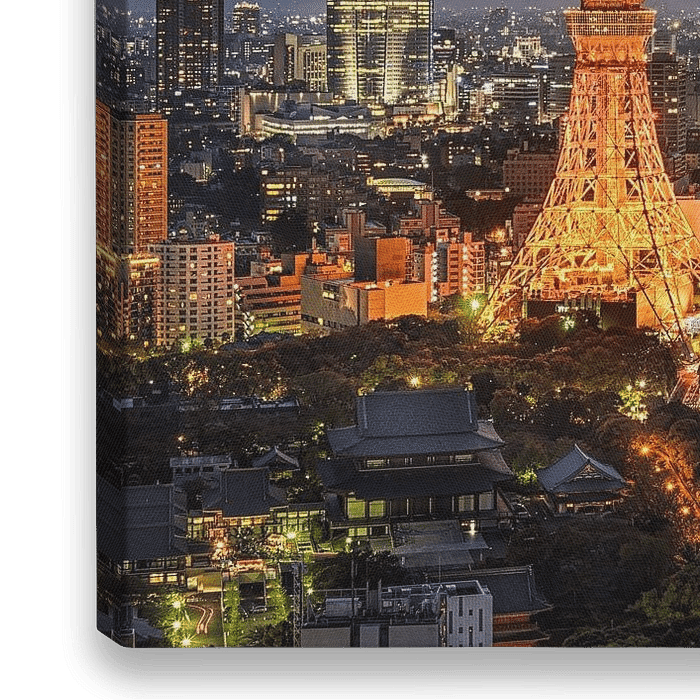 Die nächtliche Skyline von Tokio, Japan mit dem berühmten Tokioter Fernsehturm, der dem Pariser Eiffelturm nachempfunden ist