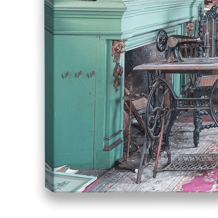 Nähmaschinen in der verlassenen Bibliothek.