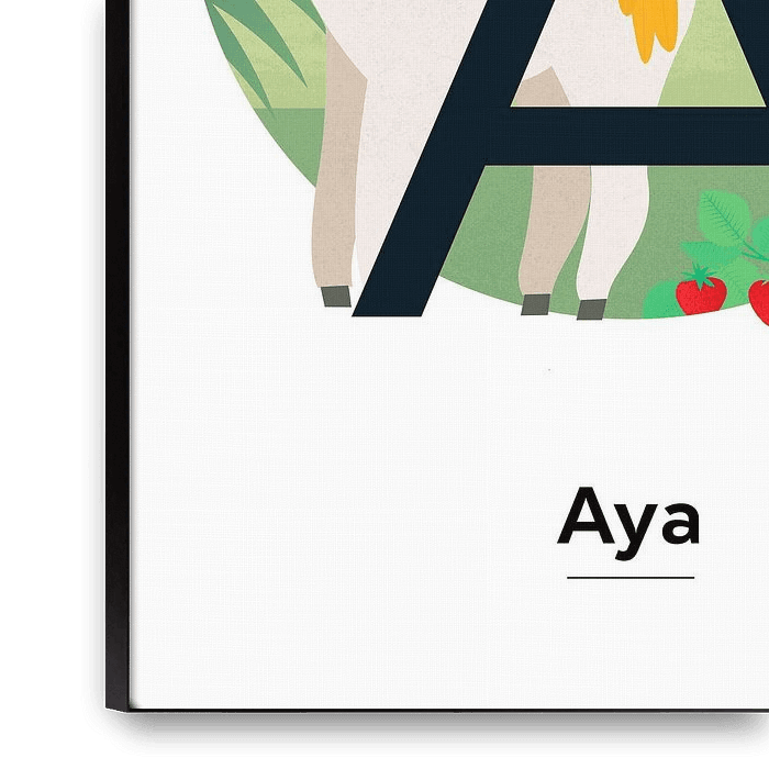 Bestelle diese Illustration Namensschild Aya von Hannah Barrow als Reproduktion auf Leinwand, Alu-Dibond, als Poster, Fototapete oder Acrylglasbild.