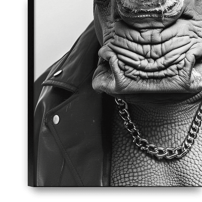 Bestelle dieses Porträt Nashorn von Poster Art Shop als Reproduktion auf Leinwand, Alu-Dibond, als Poster, Fototapete oder Acrylglasbild.