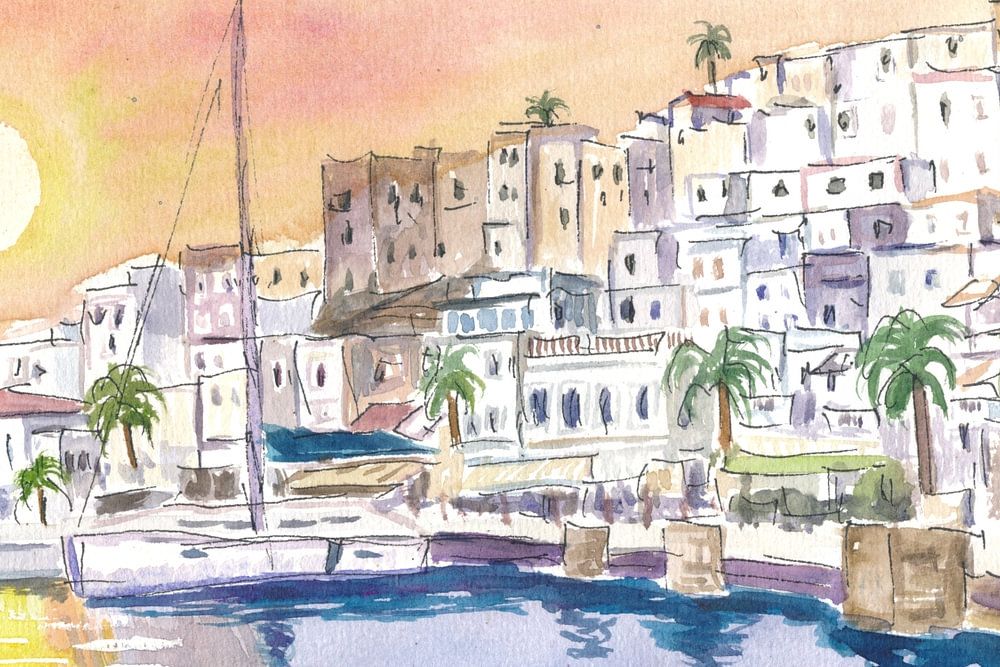 Naxos Romantischer griechischer Sonnenuntergang am Hafen Waterfront